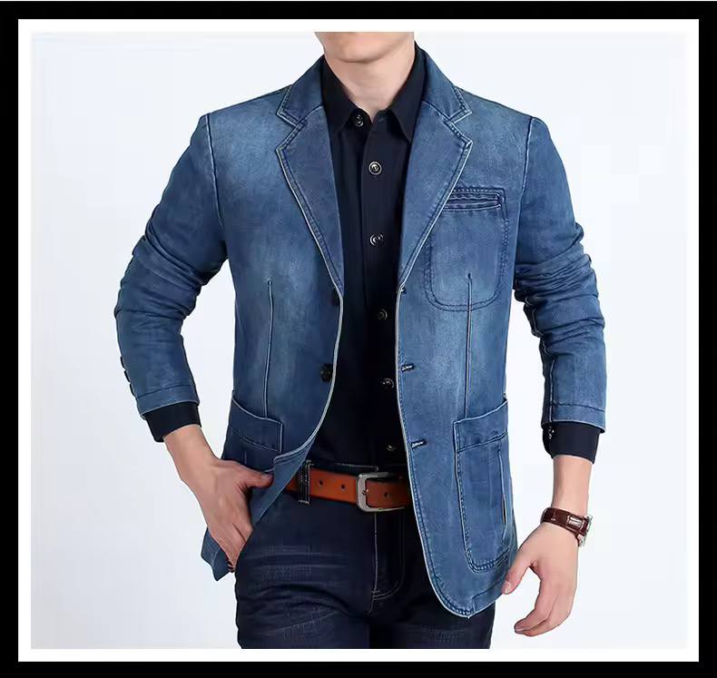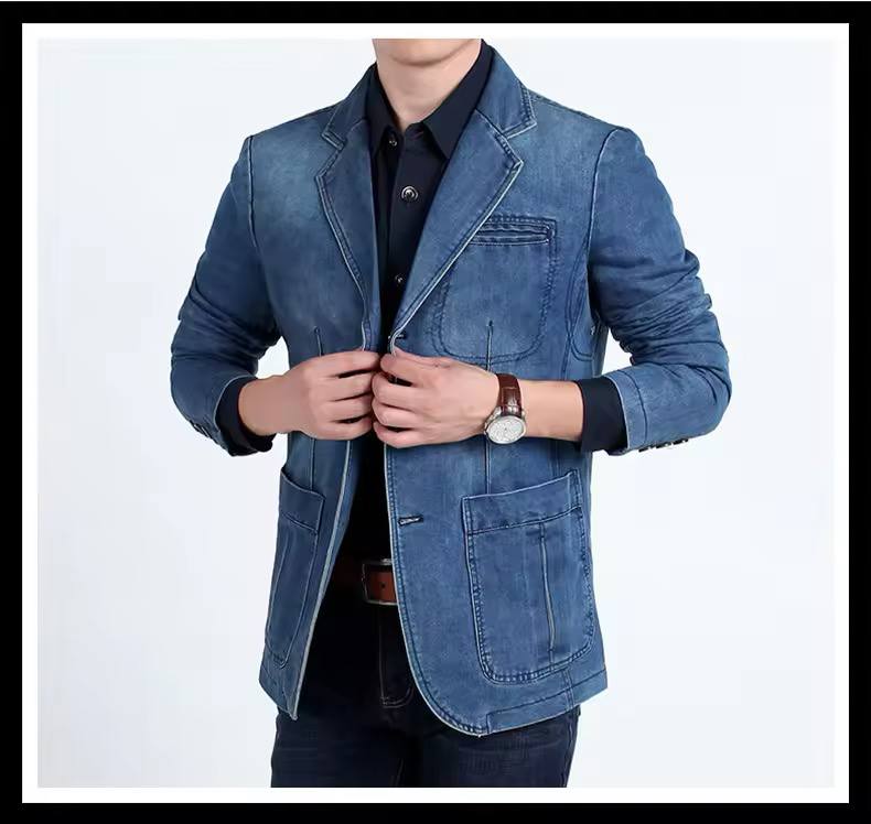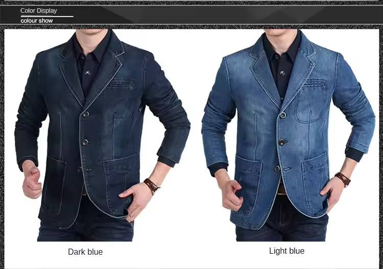 أحدث صيحات الموضة، بليزر جينز مميز بلونين متدرجين (فاتح وغامق) لإطلالة عصرية وأنيقة. يتميز هذا البليزر بتصميم عصري يتناسب مع مختلف المناسبات، مع حواف أنيقة وخياطة دقيقة.