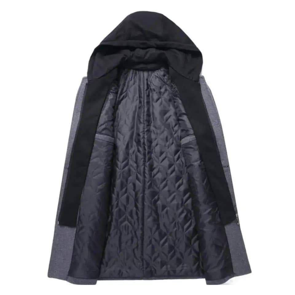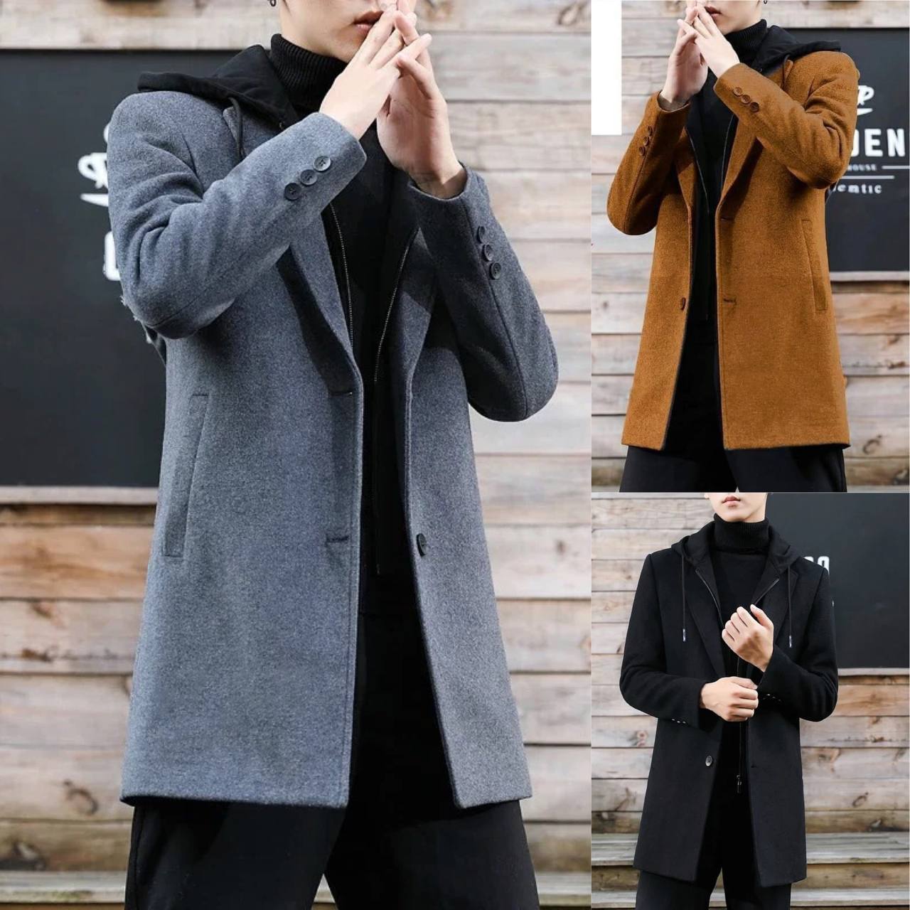 معطف أنيق طويل للرجال مزود بقبعة مدمجة